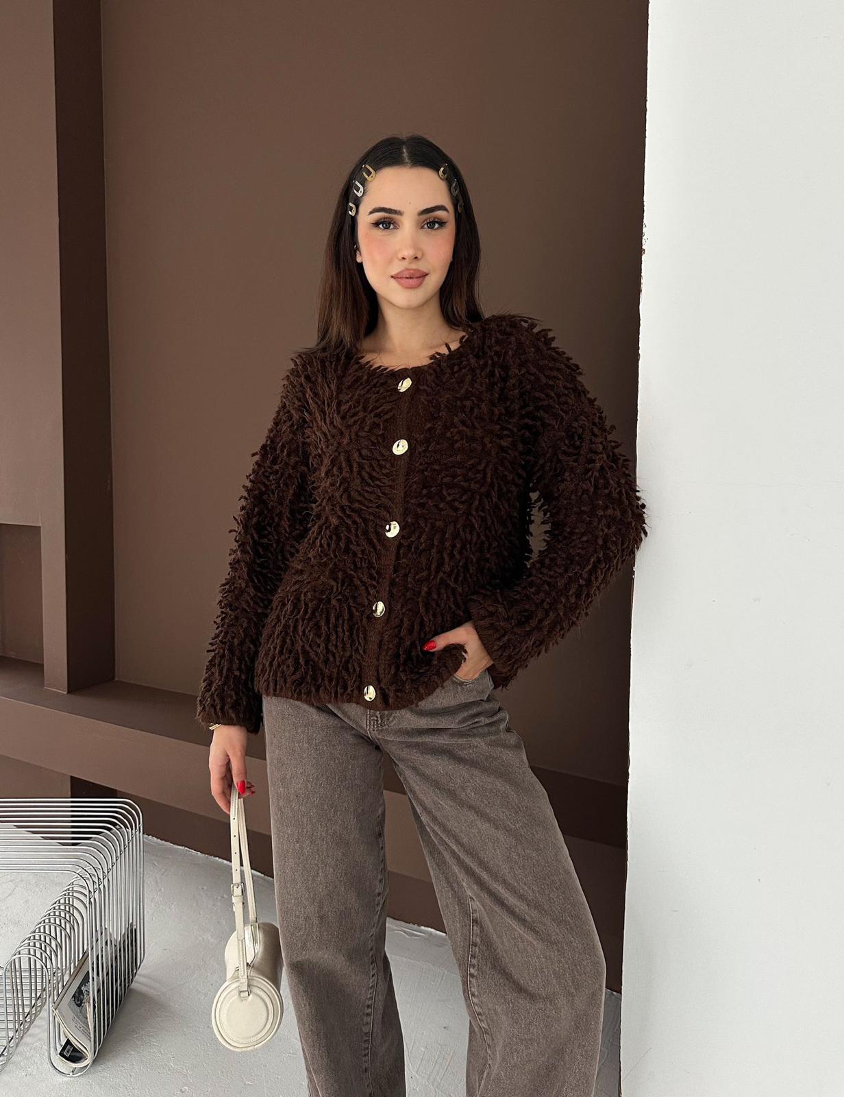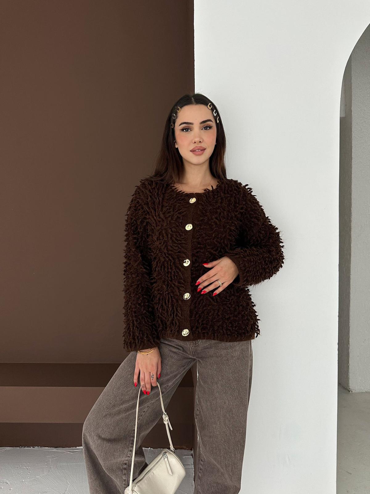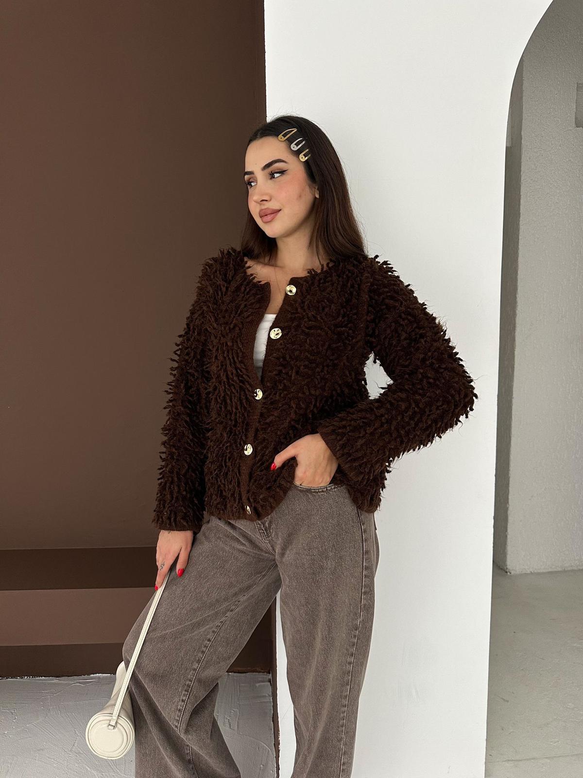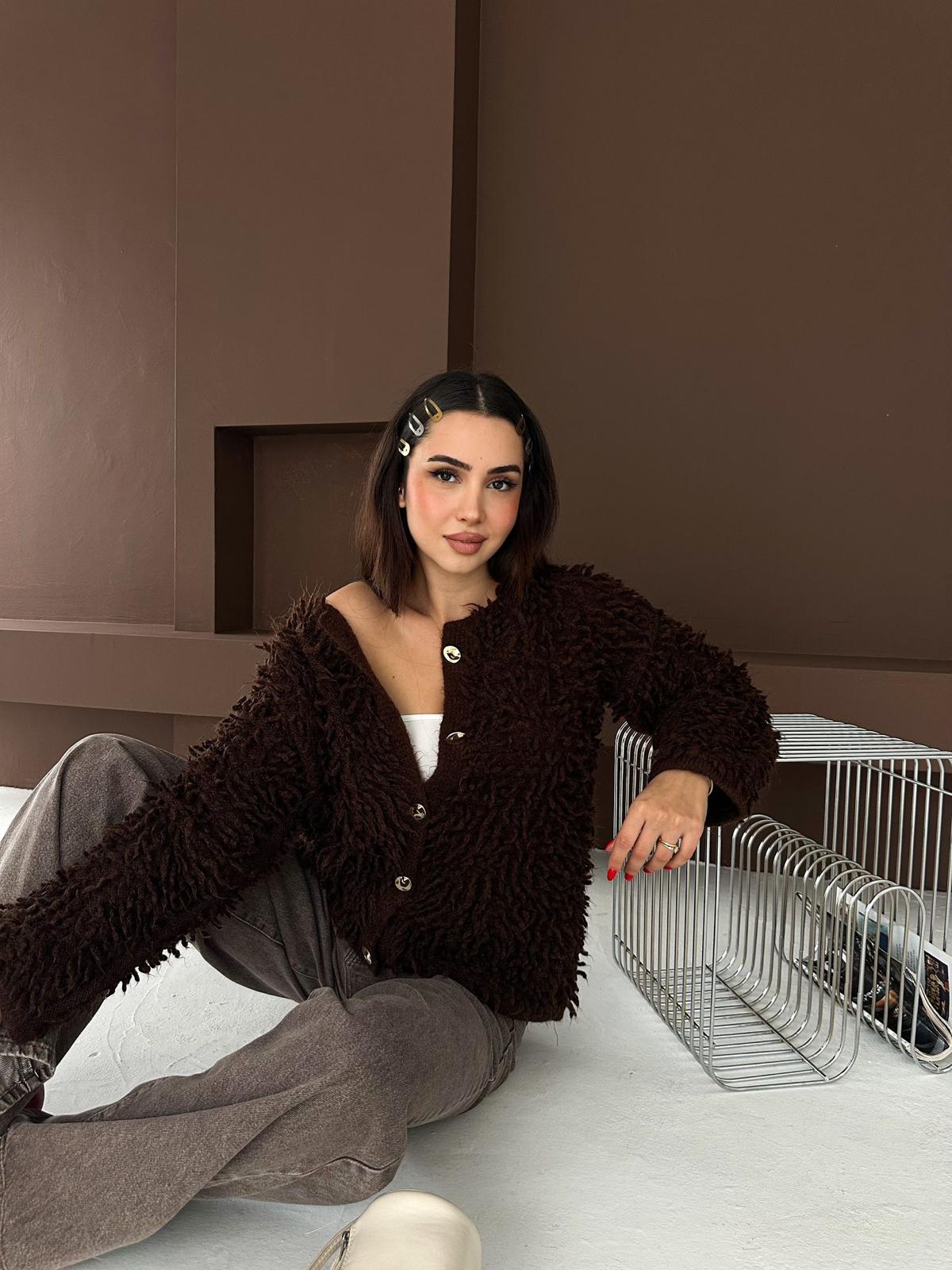 Püsküllü Kahverengi Hırka, yalnızca estetik görselliği ile değil, aynı zamanda sunduğu konfor ile de kullanıcılarının beğenisini kazanıyor. Her yaştan kadın için ideal bir seçenek olan bu hırka, şıklığı ve zarafeti bir arada arayanlar için mükemmel bir tercih. Kendinizi özenle hazırlanmış hissetmek için bu zarif parçayı dolabınıza eklemeyi unutmayın!